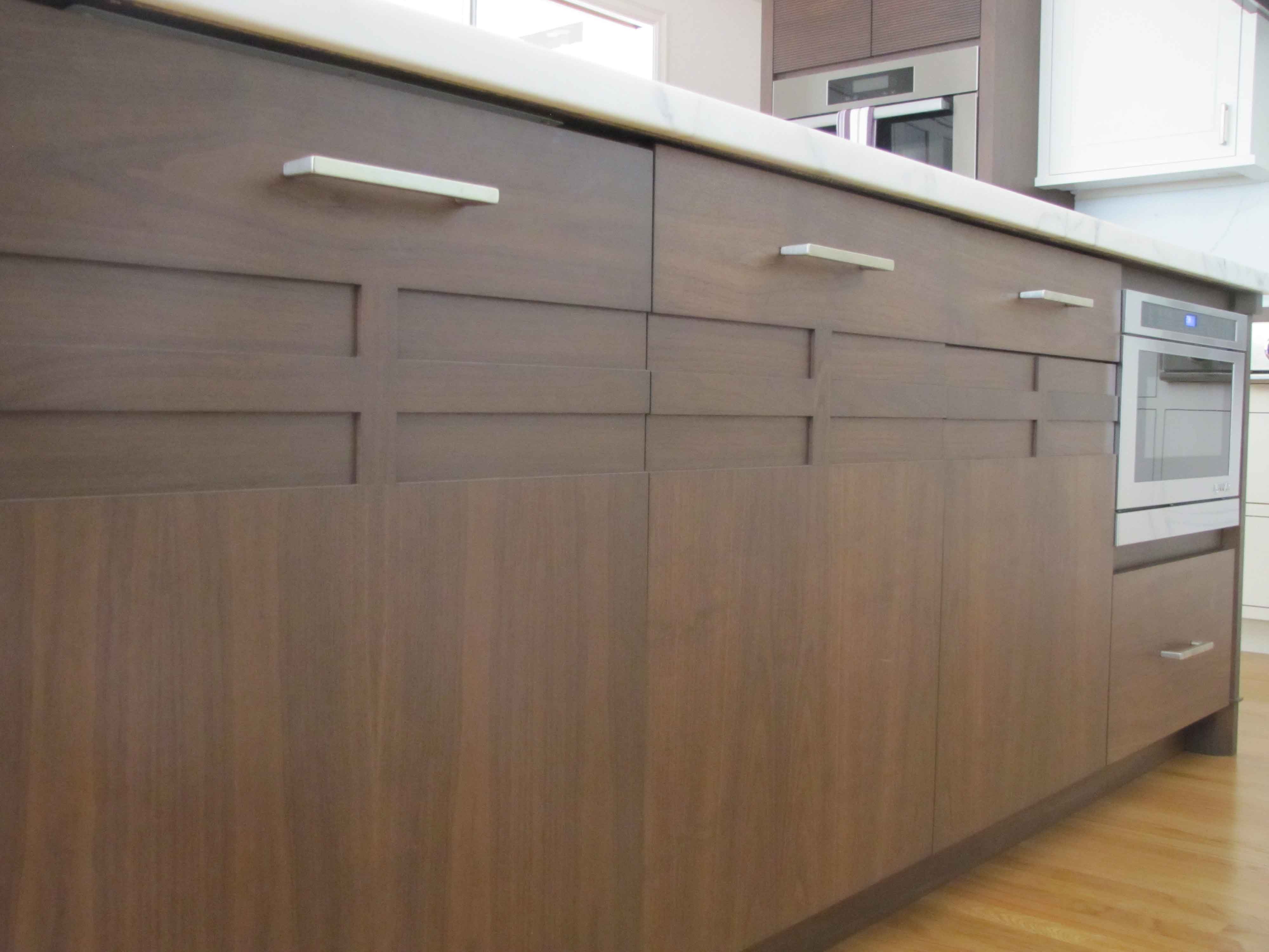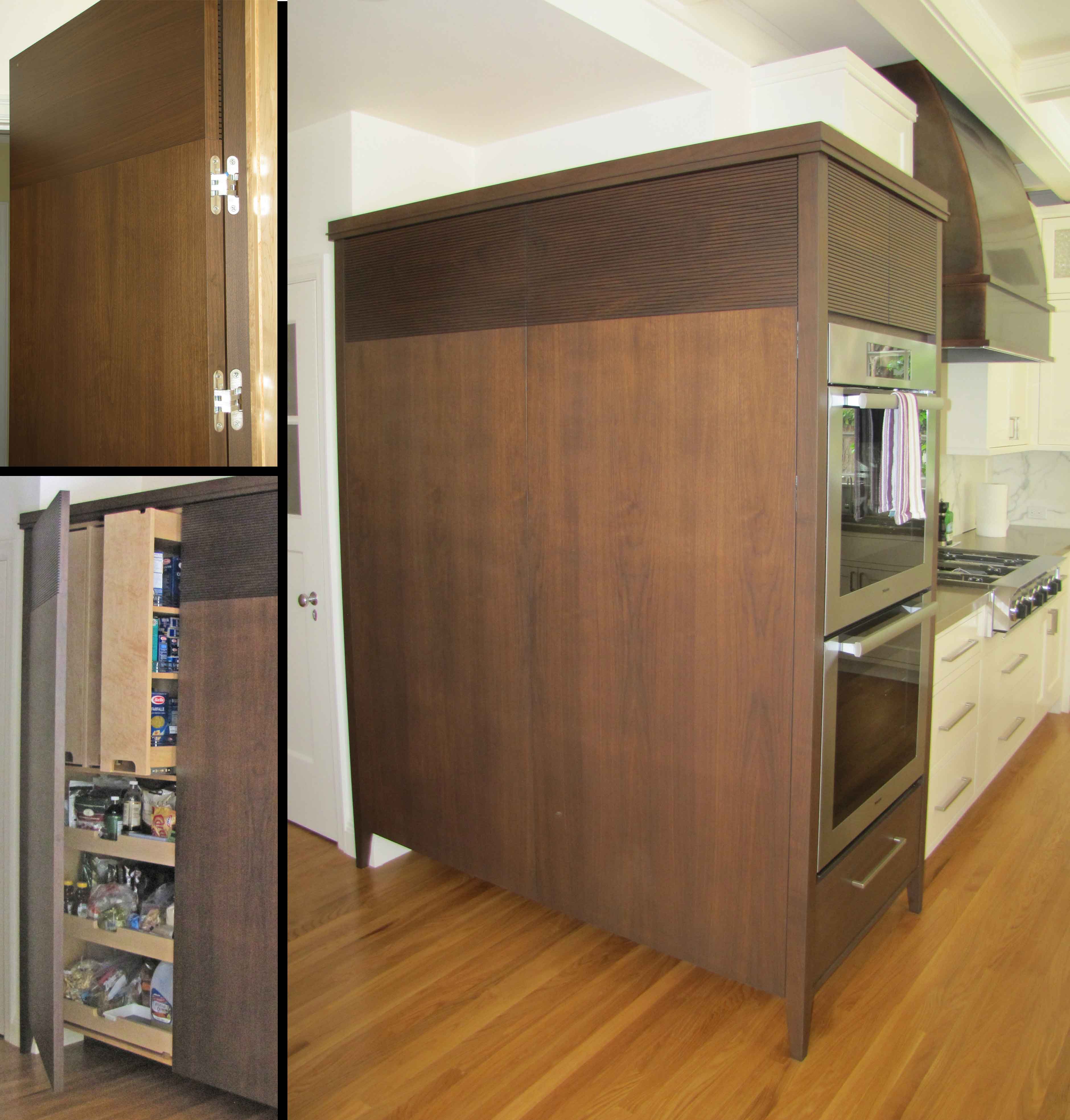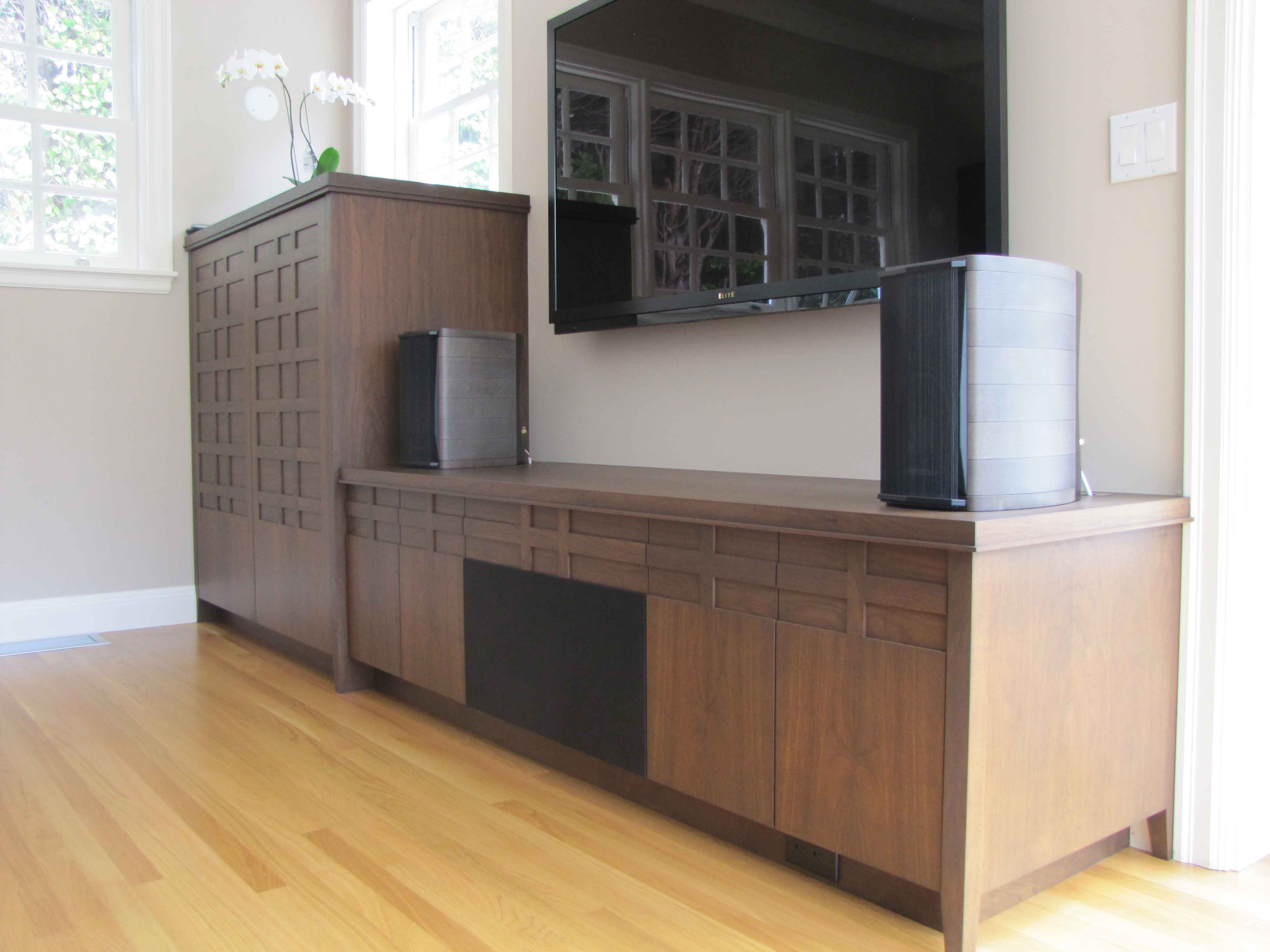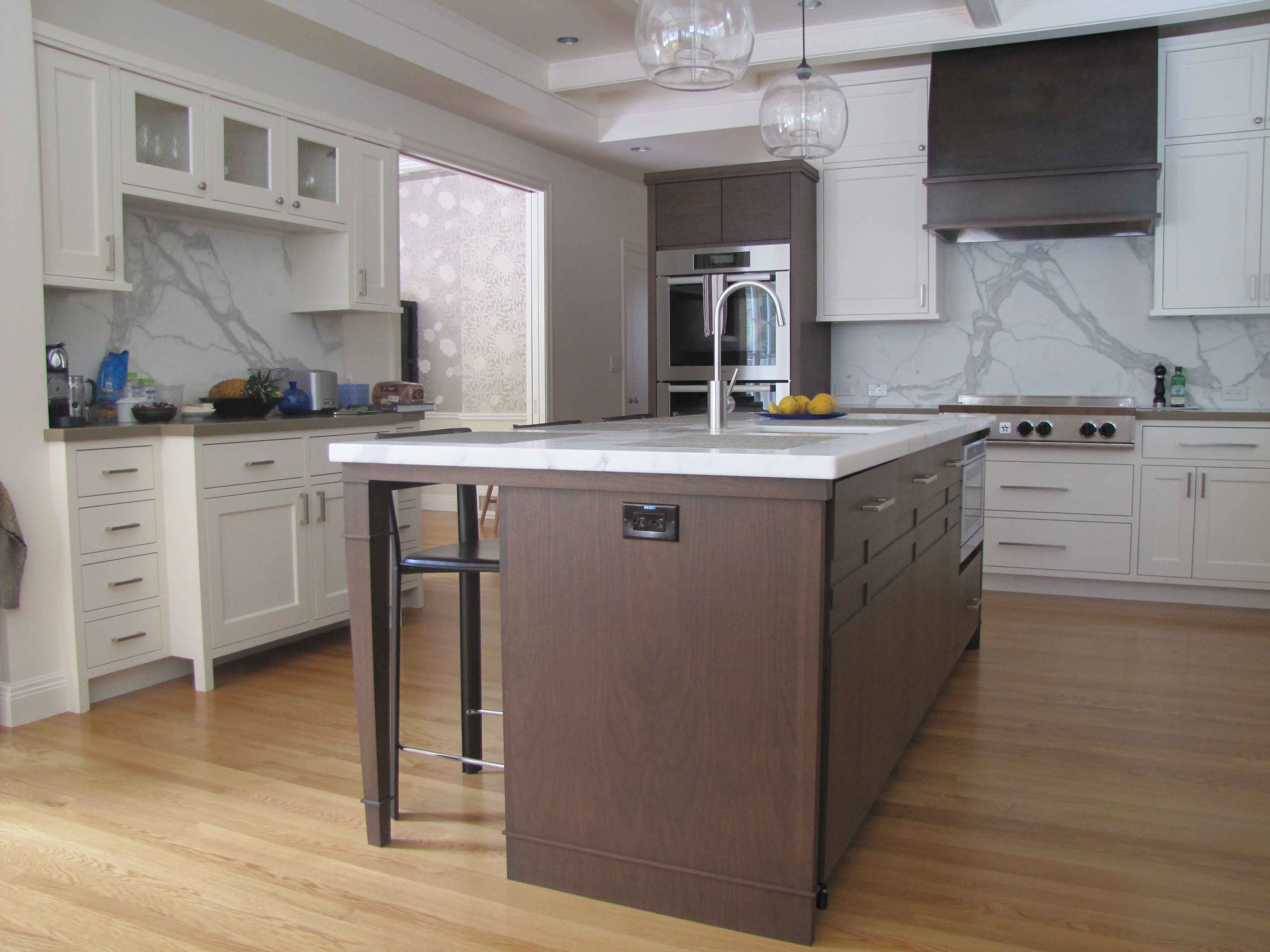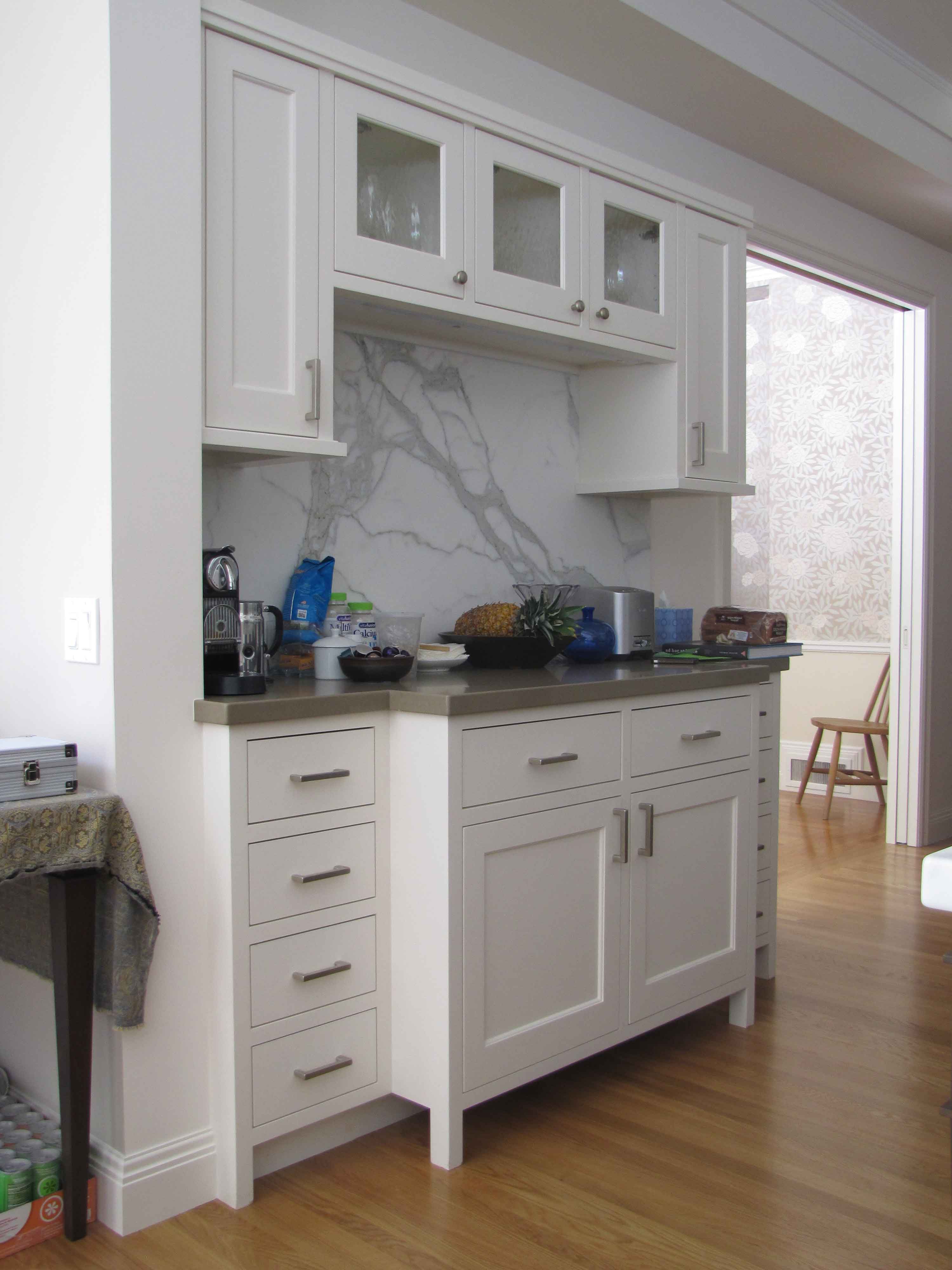 kitchen and media center. Walnut and white painted cabinetry.