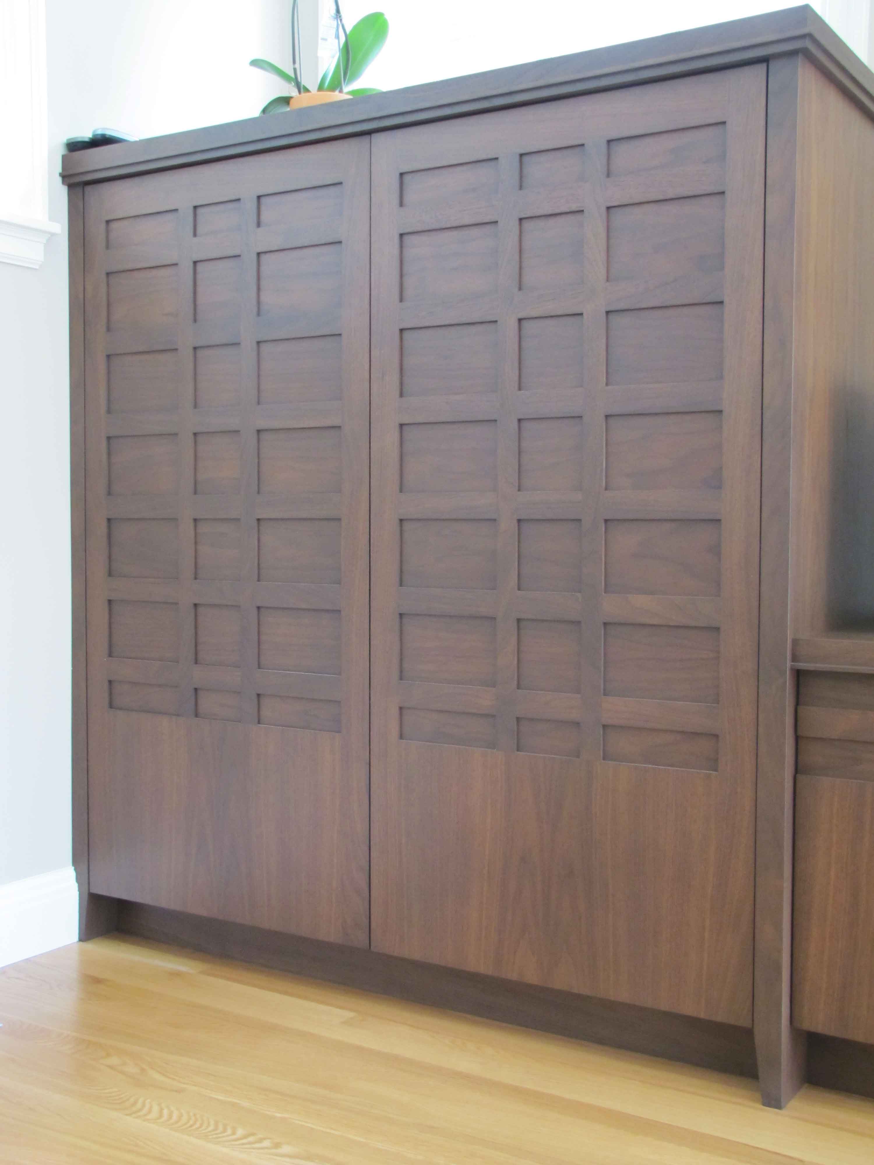 Walnut and White Painted Kitchen Cabinets and Media Center