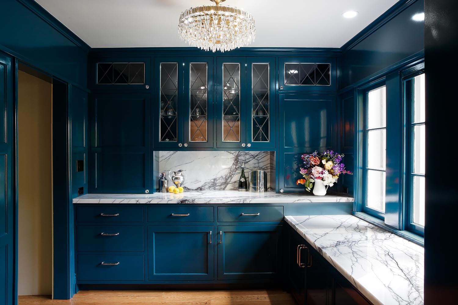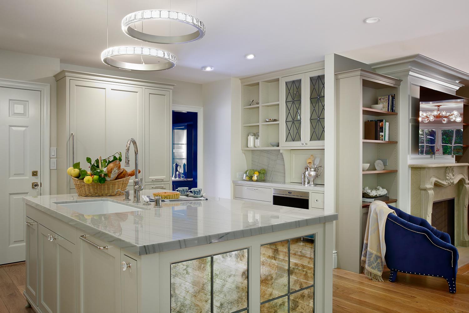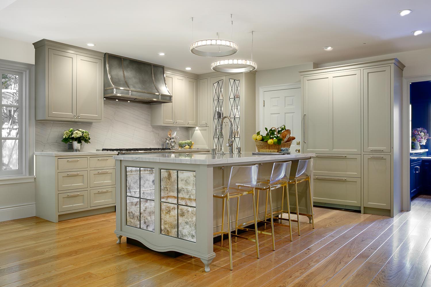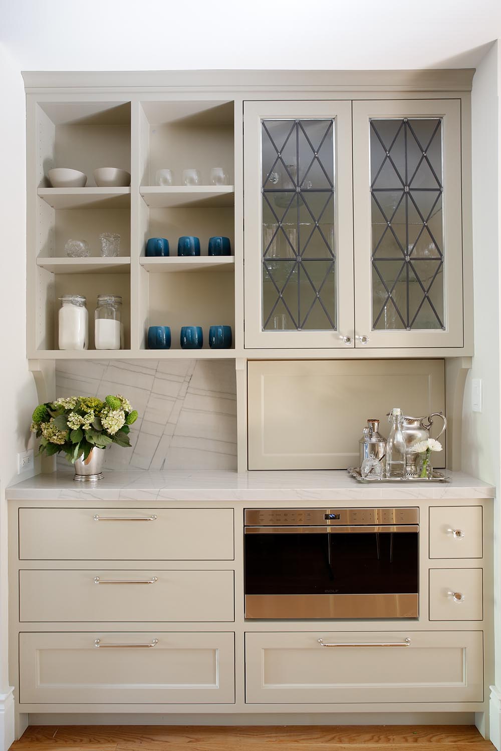 Painted Traditional Cabinets with Leaded Glass and Antique Mirror