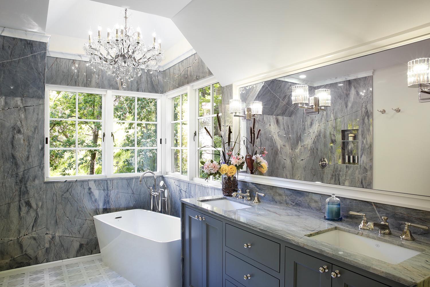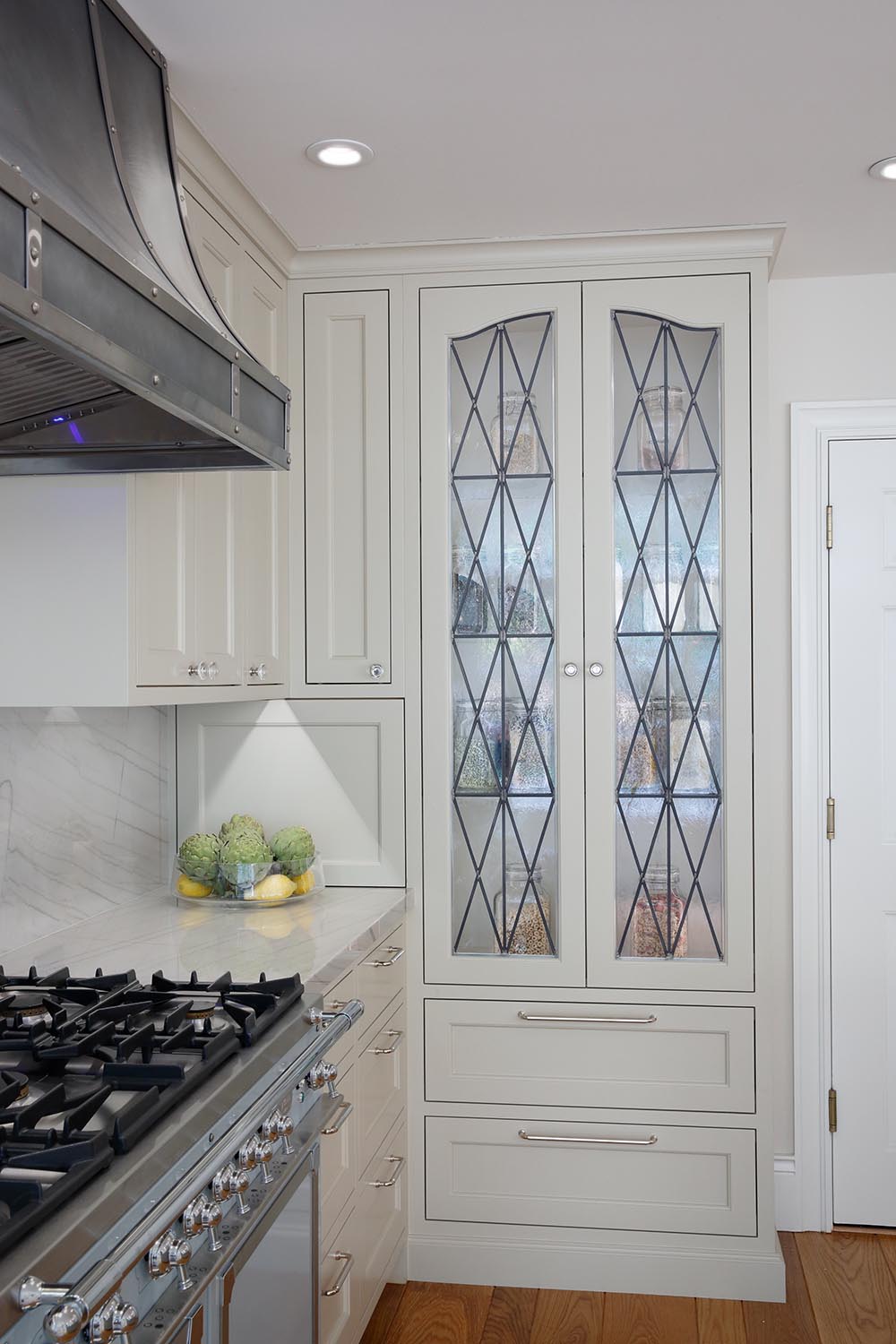 Painted Traditional Cabinets with Leaded Glass and Antique Mirror